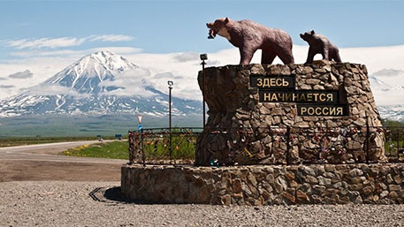 «Здесь начинается Россия» — это скульптурная группа медведицы и медвежонка на каменном постаменте. В администрации Елизова предполагают, что медведицу повредили люди, которые 13 января фотографировались у памятника, для чего двое из них залезли на постамент. Видеозапись этого события, сделанная муниципальными камерами видеонаблюдения, передана в полицию.