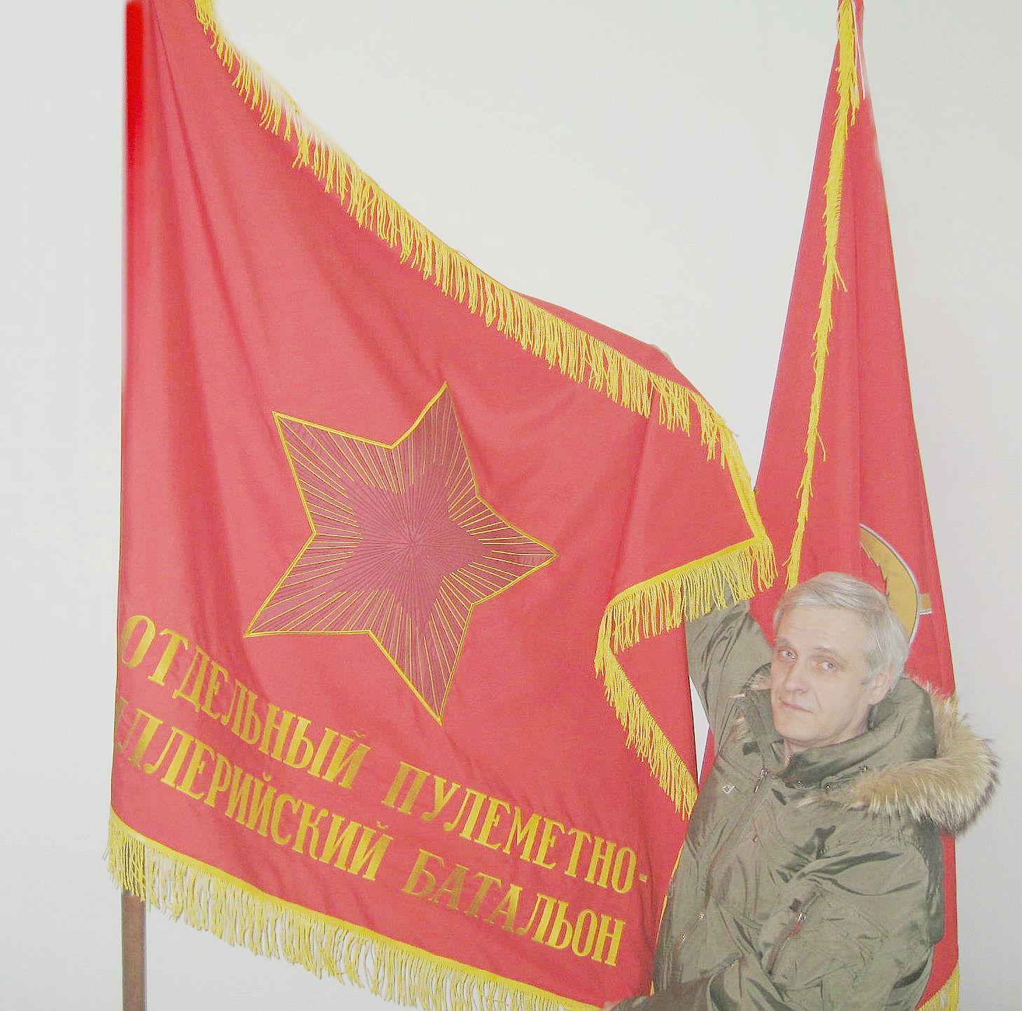 М. К. Зубрилов заказал на производстве, которое занимается изготовлением для армии знамен с довоенного времени, шелковые полотнища – точные копии оригиналов, их цвет полностью соответствует описанному в Положении Верховного Совета СССР, а остальные части знаменных комплексов – знаменные чехлы, кисти и навершия – оригинальные, со склада, еще советского производства. Древки очень качественные, из дорогого сорта древесины, что является дополнительным украшением знаменных полотнищ.