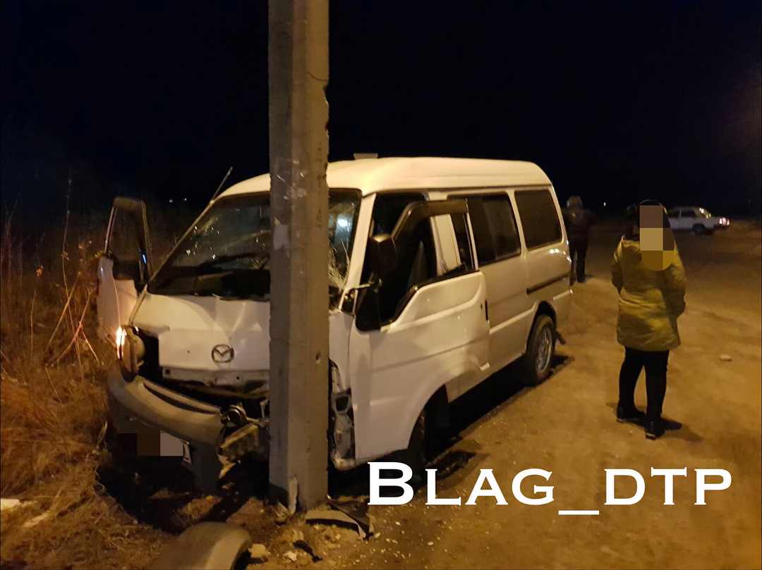 В Благовещенске «Жигули» «подрезали» микроавтобус, который в итоге врезался фонарный столб