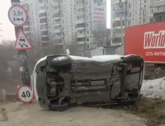 Как сообщает инстаграм-паблик dtp_khv, в районе остановки «Волочаевский городок» легковой автомобиль врезался в заднюю часть микроавтобуса, после чего завалился на бок.