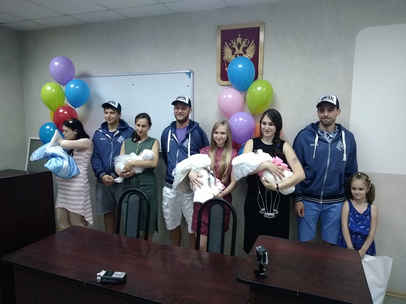 В этот день стены учреждения покинули 13 новорожденных. В качестве подарков от ХК «Адмирал» игроки вручили им комплекты с фирменной символикой клуба – конверт для прогулок, комбинезон, шапочку и нагрудник для кормления, а также общий памятный сувенир для семьи – календарь с изображением фрагментов матчей с участием приморских хоккеистов. В ответ на такое поздравление молодые родители тут же пообещали не только пополнить ряды многочисленных поклонников команды, но и привести в хоккей своих сыновей. К слову, среди присутствующих в зале оказалось немало активных болельщиков, поддерживающих ХК «Адмирал» и следящих за их выступлениями на ледовом поле. Причем по счастливому совпадению в их числе были те, у кого имеются фотографии именно с теми спортсменами, которые посетили торжественную выписку в медучреждении. Кроме того, как выяснилось позже, один из молодых пап посвятил профессиональному хоккею 14 лет. Поэтому вручение его маленькому сыну первого подарка от приморских хоккеистов он назвал по-настоящему знаковым.