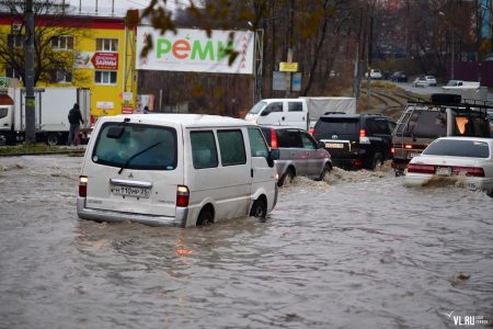 Дороги и дворы Владивостока затоплены после проливного ливня