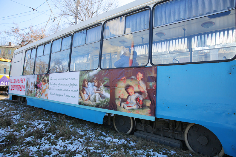 В преддверии Дня матери, который в мире отметят 25 ноября, на линию во Владивостоке вышел праздничный трамвай. Таким образом сотрудники ОАО «Электрический транспорт» решили внести свою лепту в череду торжеств и поздравить пассажиров, передает ДВ – РОСС.