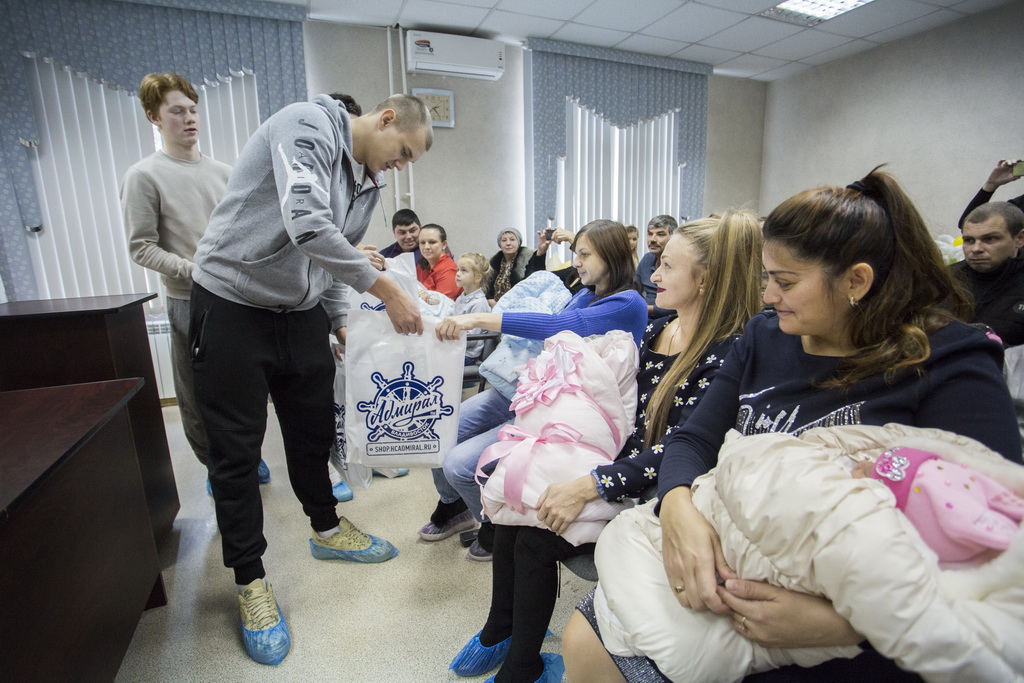 Хоккеисты команды «Адмирал» приехали на выписку в роддом № 3 Владивостока