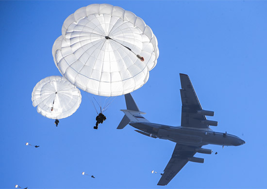 В соответствии с замыслом учения личный состав совершил захват аэродромов условного противника с целью обеспечения его захвата