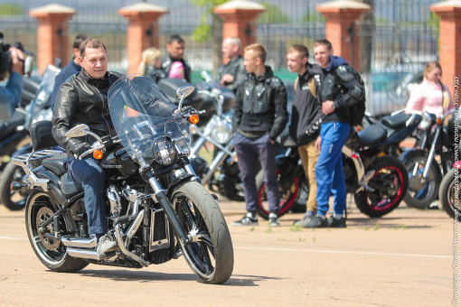 Круг почета руководитель администрации сделал на легендарном Харлей Девидсоне.