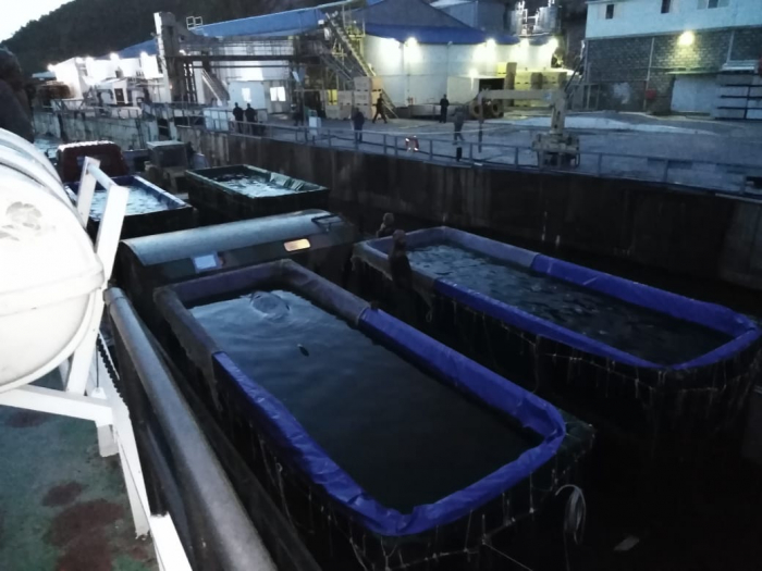 Судно прибыло вечером около 20 часов. Животные перенесли транспортировку спокойно. Прохладная пасмурная погода не позволяла воде нагреваться, поэтому на всем пути следования ее температура была комфортной для мормлеков, не требовалось дополнительного охлаждения путем добавления в ванны льда. За состоянием животных и их поведением непрерывно следили ветеринары, тренеры и ученые ВНИРО.