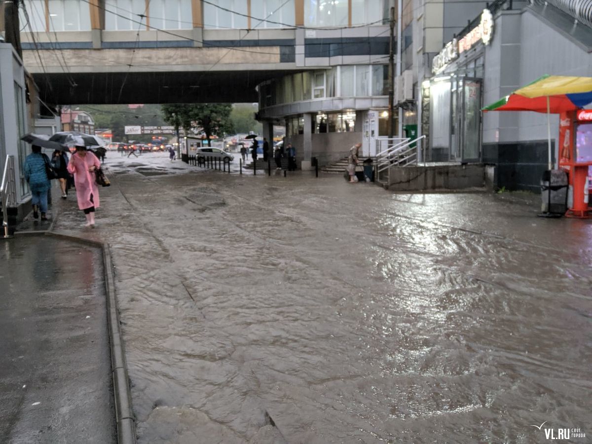 Ночной ливень во Владивостоке снова обрушил потоки воды на улицы Русскую, Пограничную, Луговую, Калинина и Седанку