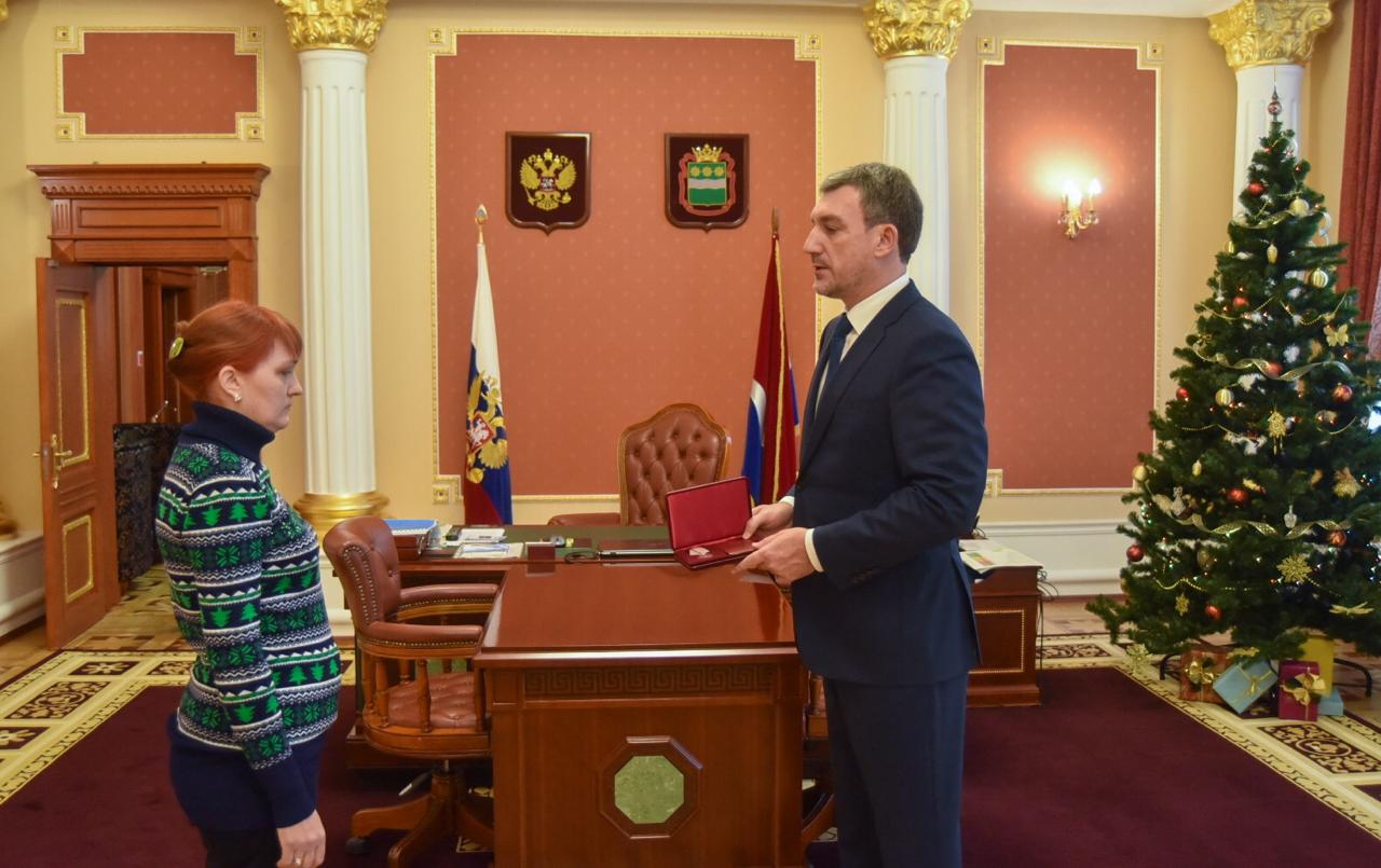 Губернатор Василий Орлов вручил государственную награду – медаль «За спасение погибавших» Марине Владиславовне Пачикиной. Её сын, Дмитрий Пачикин, студент Амурского колледжа строительства и жилищно-коммунального хозяйства, награжден медалью посмертно. Об этом передает ДВ-РОСС со ссылкой на пресс-службу правительства Амурской области.