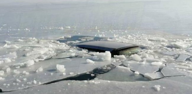 Машина ушла под лёд у берегов Приморья