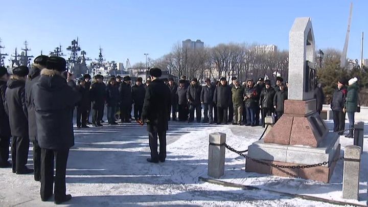Ветераны-подводники и представители командования Тихоокеанским флотом возложили венок и цветы к памятнику первым подводникам и почтили память всех, кто стоял на страже безопасности нашей Родины, находясь в отсеках подводных лодок.