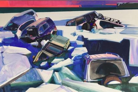Художник во Владивостоке написал картину в память о машинах, массово ушедших под лед на острове Русский