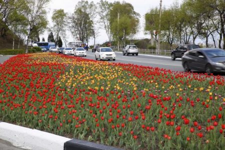 В мае 2020 года яркие композиции из тюльпанов появятся в новом сквере на ул. Спортивной, на круговых автомобильных развязках остановок «Волна», ЖБК и МЖК, у мемориала Победы на Находкинском проспекте. По традиции, самая большая мозаика распустится на клумбе у памятного комплекса «Камень Дружбы». Ковер из цветов образуют 17 тыс. 720 экземпляров тюльпанов красного, желтого и розового цветов.