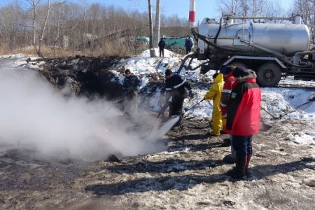 Всего по состоянию на 16 марта вывезено 100 куб. м. водомазутной смеси, 332 куб. м загрязнённого грунта, очищено более 7000 кв. м. загрязнённой территории.