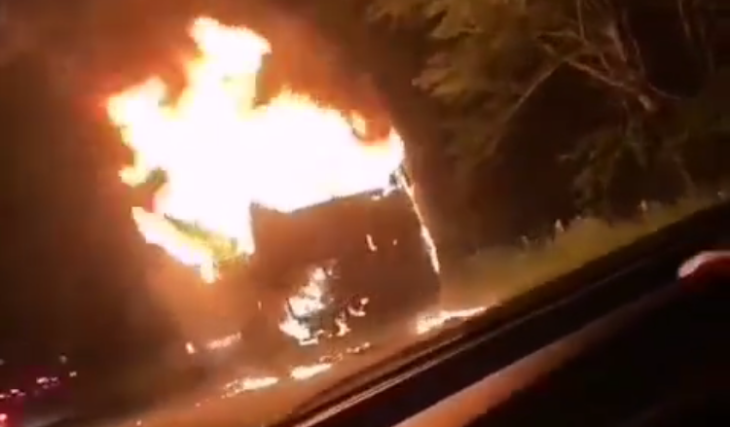 В Приморском крае на трассе по дороге в Партизанск мощный огонь охватил автобус, передает ДВ — РОСС.