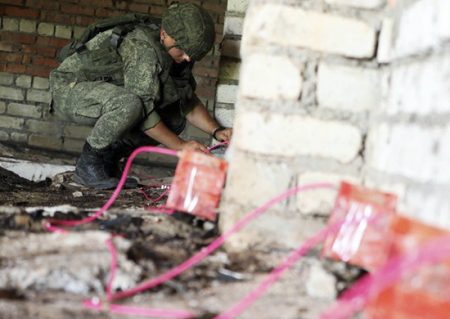 Большая часть зданий разрушена проведением подрывных работ. Остальные здания разбираются механическим способом с помощью тяжелой инженерной техники. Для работ задействована инженерная машина разграждения на базе танка (ИМР).
