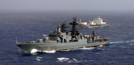 В отряд входят два больших противолодочных корабля «Адмирал Трибуц» и «Адмирал Виноградов», а также большой морской танкер «Борис Бутома». Он совершал плановый переход в Андаманское море для участия в совместном российско-индийском военно-морском учении «Индра Нэви».