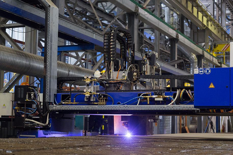Резка первых деталей корпуса судна началась в блоке корпусных производств на новом высокотехнологичном газо-плазменном станке, установленном в рамках расширения действующих мощностей основного цеха верфи.