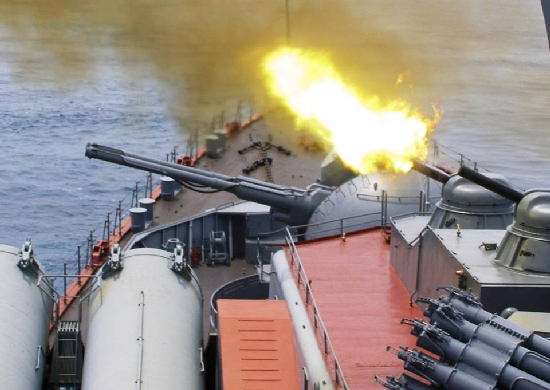 Ракетный крейсер «Варяг» провёл артиллерийские стрельбы в Японском море
