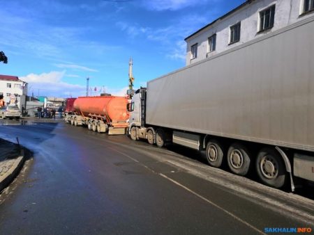 Водители большегрузов ожидают приезда прокурора (только никто точно не знает, какого именно — холмского, транспортного или Сахалинской области), а также начальника транспортной полиции.