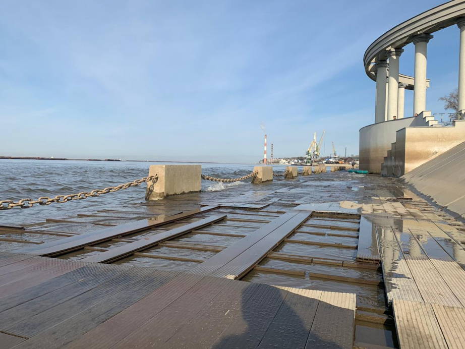 В прошлом году из-за подъема уровня воды, вдоль прогулочной территории в некоторых местах провалился грунт. Наиболее масштабные «провалы» были зафиксированы в районе нескольких колонн. Кроме того, были частично подтоплены подвальные помещения универсального краевого спортивного комплекса и легкоатлетического манежа.