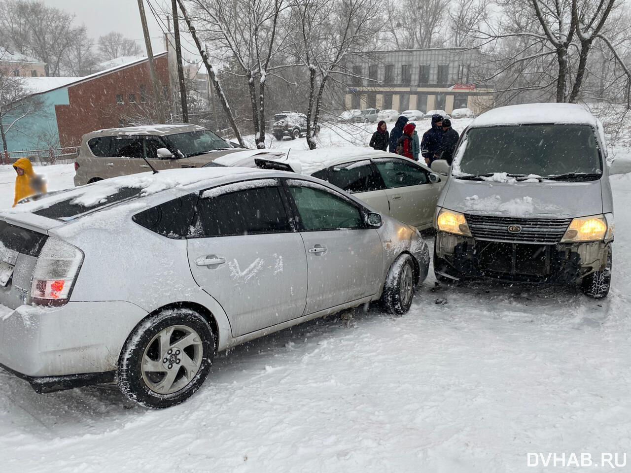 Рекорды аварийности вызвал в вечерние часы снегопад в Хабаровске (ФОТО)