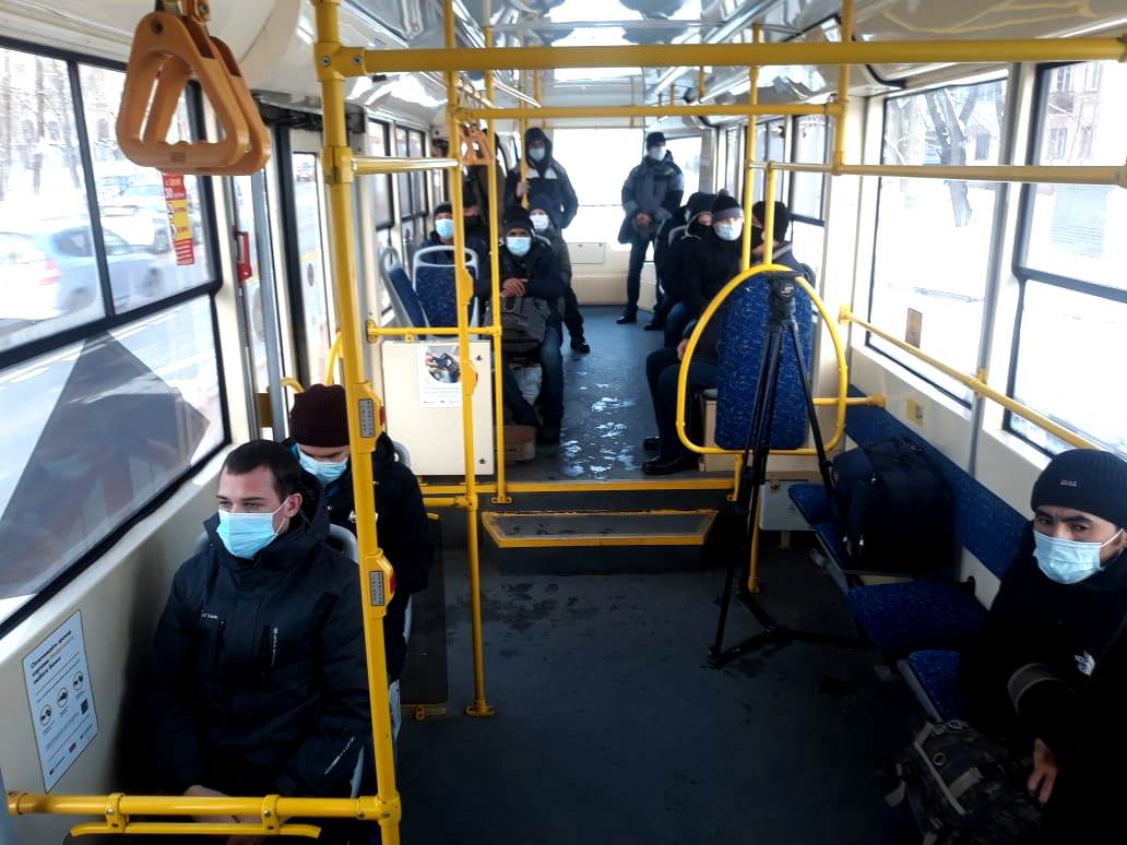 Сегодня в течение дня профилактическое мероприятие проводится только на рейсах двух трамваев и двух троллейбусов. К примеру, на трамвайном маршруте от остановки «Химфармзавод» до железнодорожного вокзала сильных задержек не произошло: практически все пассажиры с пониманием относились к просьбам кондуктора надеть маску, а тем людям, у которых ее не было в наличии, персонал выдавал защитные средства.