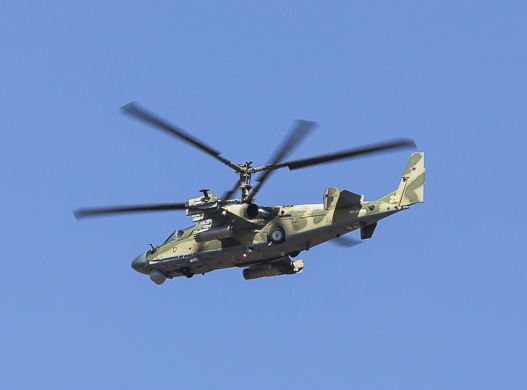 Перед взлетом инженерно-технический состав проверил готовность многоцелевых ударных вертолетов Ка-52 «Аллигатор» и транспортно-штурмовых Ми-8амтш «Терминатор» к продолжительному полету в горы Дальнего Востока.
