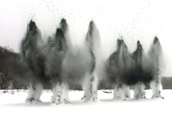 Военные инженеры тренируются в подрыве льда на Сахалине