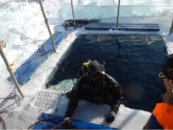 Для тренировки выбрали затопленную штольню в Солнечном районе Хабаровского края. Её глубина — свыше 80 метров, дух захватывает! Но прозрачность воды – почти идеальная, что позволило отработать самые сложные упражнения по погружению и подъёму подо льдом.