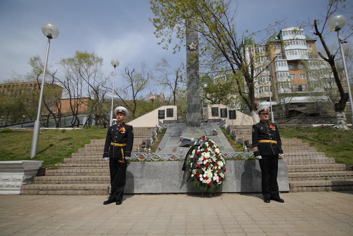 Памятник установлен во Владивостоке в 1975 году напротив исторического здания Восточного института. Обелиск на улице Пушкинской является напоминанием, что среди не вернувшихся с фронта бойцов были выпускники военной кафедры Дальневосточного политехнического института (ДВПИ, позже ДВГТУ).