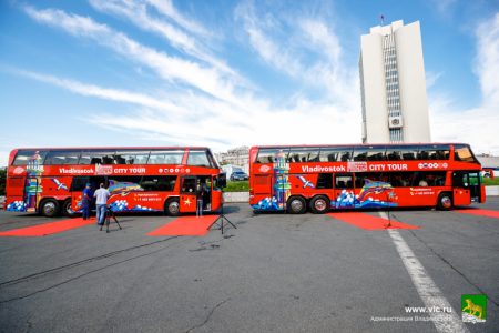 Двухэтажные туристические автобусы начали курсировать по Владивостоку