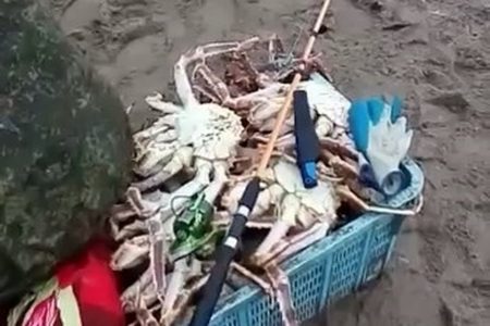Как стало известно, крабы буквально кишат у побережья села Ильинское Томаринского района. Местным жителям не нужно прикладывать особых усилий, чтобы их добыть – достаточно закинуть в море удочку с наживкой и подождать пару минут. Мужчины за несколько часов набили деликатесным морепродуктом два небольших контейнера.