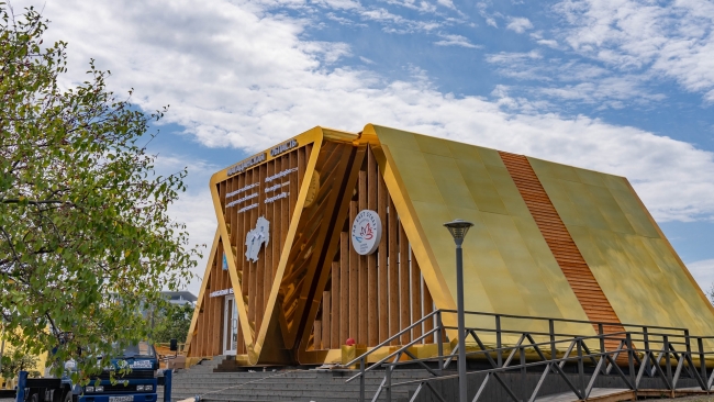 В основе архитектуры павильона – золотой треугольник, который символизирует единение тела, души и духа. Эту фигуру взяли за основу как национальный орнамент, который используется в вышивке эвенов, коряков, чукчей и других народов.