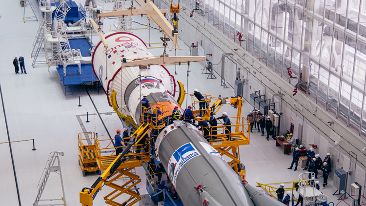 В рамках выполненных работ состыкованы космическая головная часть (разгонный блок «Фрегат» и 36 космических аппаратов OneWeb под обтекателем) и третья ступень с «пакетом» (первая и вторая ступени) носителя. По окончании стыковки выполнена сборка электрических соединений и смонтированы трубопроводы для термостатирования.