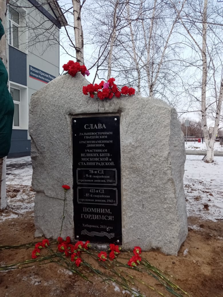 20 ноября 2021 года клирик Спасо-Преображенского кафедрального собора иерей Сергий Пустенький совершил чин освящения памятного знака, посвященного 78-ой стрелковой дивизии, отличившейся в ходе битвы за Москву в период Великой Отечественной войны на станции «Красная речка». Об этом передает ДВ-РОСС со ссылкой на Хабаровскую епархию РПЦ.