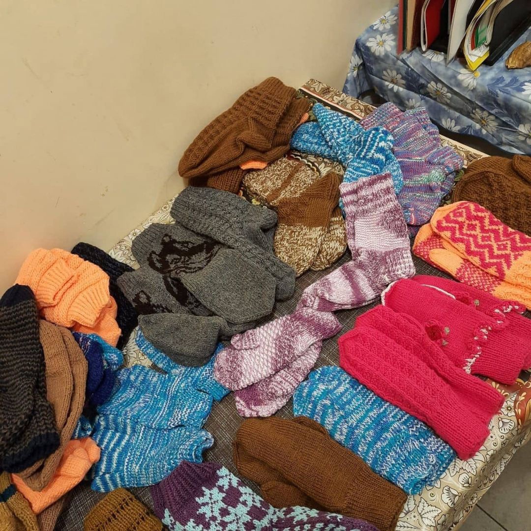 Сотрудники соцотдела передали в исправительное учреждение 20 килограмм пряжи и вязальные спицы. Женщины связали для бездомных порядка 80 пар шерстяных носков и столько же рукавиц.
