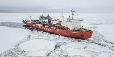 Оно способно пробивать путь во льдах толщиной до одного метра. Корабль-гигант в начале ноября отправился по Северному морскому пути из Петербурга.