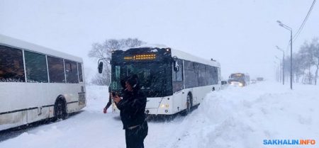 Автобусы с пассажирами массово застряли в снегу по пути в Южно-Сахалинск