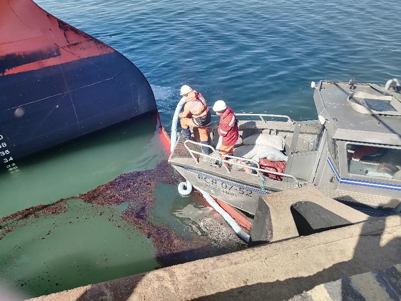 Общий объем разлива по информации от экипажа составил около 200 литров. Спасателями было принято решение обработать пятна нефтепродуктов сорбентами, затем при помощи водной струи пожарного ствола танкера все плавающие на поверхности воды нефтепродукты были сконцентрированы в одном месте — в районе носовой части судна.