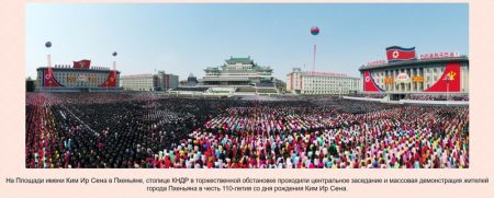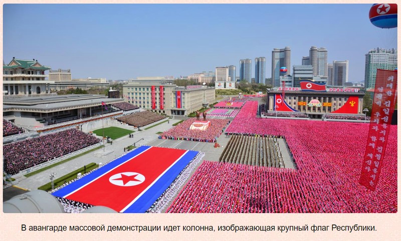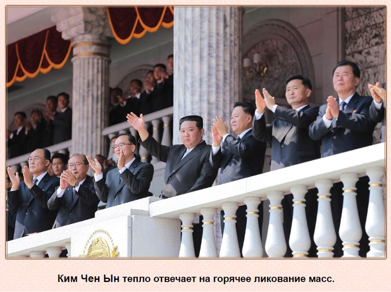 Торжества проходили под руководством Генерального секретаря Трудовой партии Кореи, Председателя государственных дел КНДР, Верховного главнокомандующего вооруженными силами КНДР Великого товарища Ким Чен Ына.