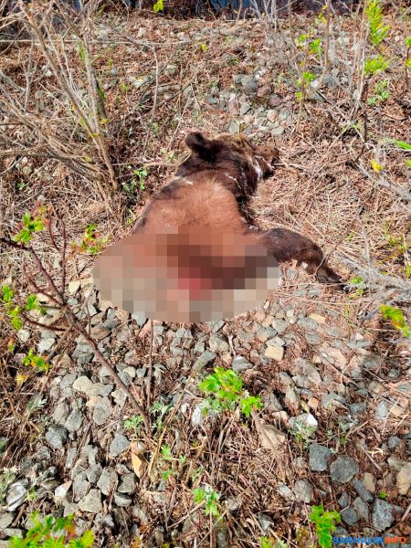 Собиратели папоротника в районе села Гастелло Поронайского района наткнулись на разрезанного пополам медведя.