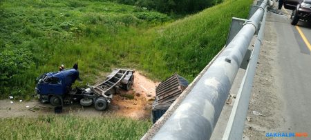 7 июля в 9 часов водитель, управляя большегрузом Scania, двигаясь по автодороге Южно-Сахалинск — Холмск, в районе Пятиречья не справился с управлением и допустил съезд своего транспортного средства с моста.
