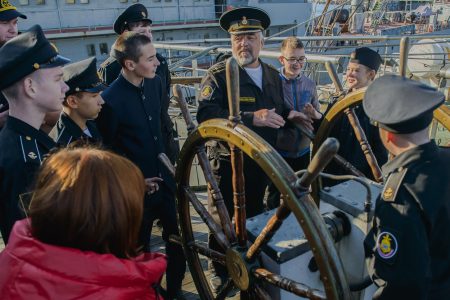 Учебное парусное судно «Паллада» уже больше 30 лет бороздит морские просторы. За эти годы на фрегате прошли практику и получили бесценный опыт тысячи курсантов, юнг и студентов-моряков с разных уголков России. Но, помимо обучения профессиональному мастерству, на «Палладе» регулярно устраивают экскурсии для подрастающего поколения – ребят, которые в будущем могут связать свою судьбу с морем.