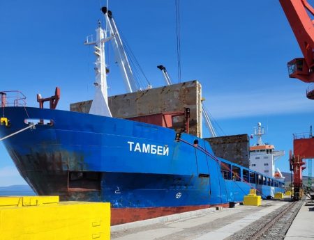 Сухогруз «Беринг» с генеральным грузом более 9199 тонн и теплоход «Тамбей» с грузом более 8234 тонн на борту доставили технику и строительные материалы, предназначенные для строительства Баимского горно-обогатительного комбината (ГОК).